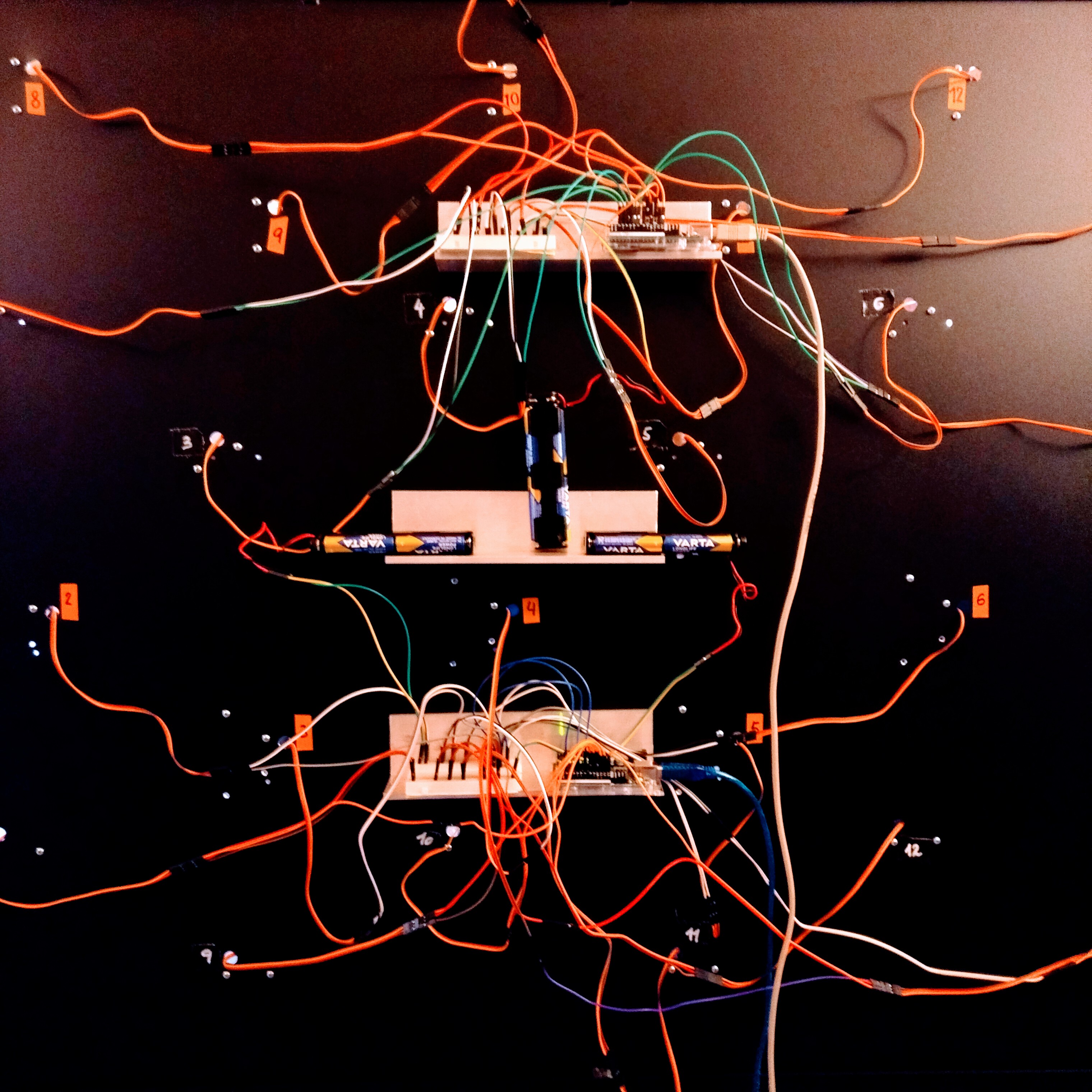Wir haben uns dabei auf als ausser-gewöhnlich deklarierte Phänomene intensiver und verschränkter menschlicher Sinneswahrnehmung fokussiert und versucht diese beispielhaft durch Aufbau einer Raum-im-Raum Situation, mittels Projektionen, mittels Sound Design, mittels Microcontroller-basierter Skulptur und mittels eines verbal-assoziativen Experiments in eine künstlerische Sprache zu übersetzen. Eine unserer zentralen Fragestellungen dabei war: „Wissen wir und ist uns bewusst – in Bezug zur menschlichen, vielschichtigen Wahrnehmung – was real ist und wie unsere individuelle Wahrnehmung zustande kommt?“